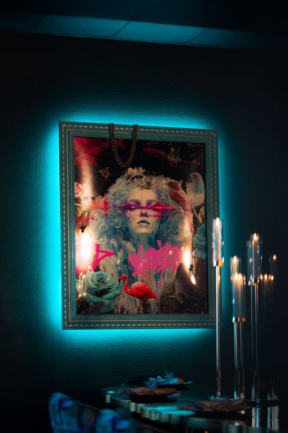 A nature inspired dining room set with a gold brass finish. The table base mimics the shape of a tree trunk while the top resembles the timeless beauty of a tree's log rings.